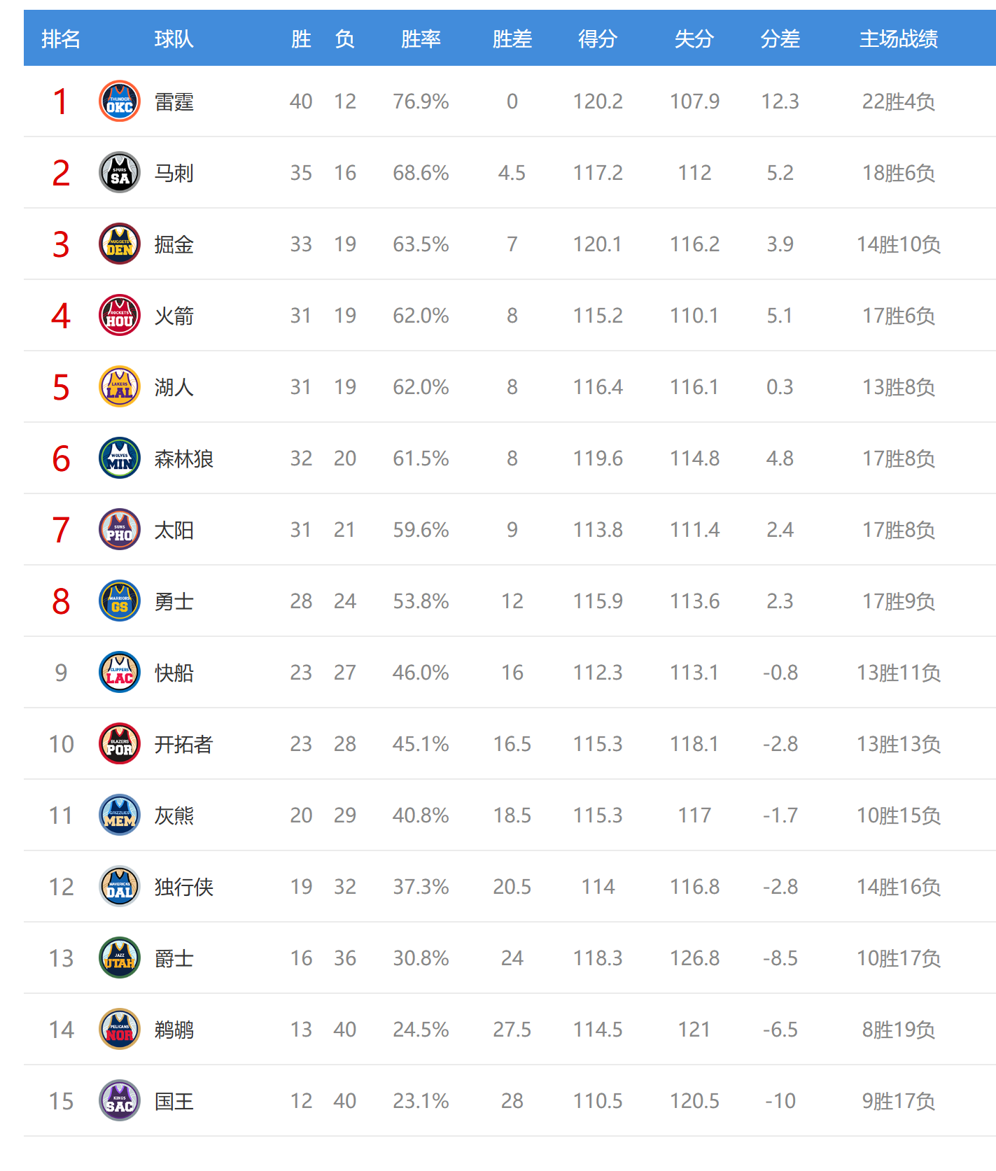 今日比赛后湖人、森林狼排名互换,其他西部球队排名不变。